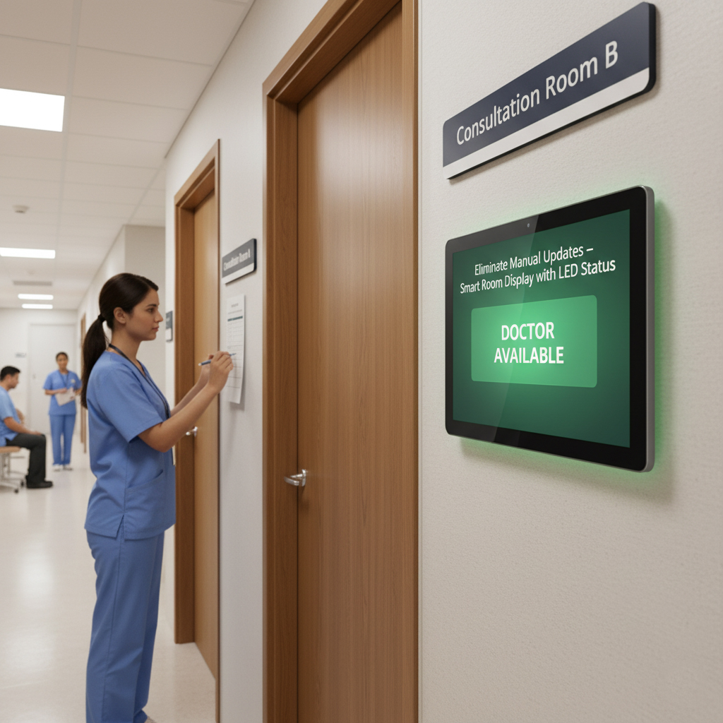 A major urban hospital in Southeast Asia was facing this exact problem. With more than 40 consultation rooms operating daily, the facility depended on printed timetables and handwritten notes to manage doctor availability. Any shift change required nurses to physically update paper signs posted outside each room. When delays occurred, the information rarely reached patients quickly enough. This led to situations where patients queued outside rooms that were temporarily unavailable, while other rooms sat idle.