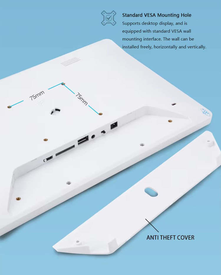 Public environments require a display that can withstand frequent touches higher temperature exposure and long hours of operation. The structure of the 13.3 inch wall mounted android tablet is strengthened using durable enclosure materials and a heat dissipation design suited for commercial facilities. This ensures the device maintains smooth performance even during extended operation inside retail stores hotels schools or transportation hubs.