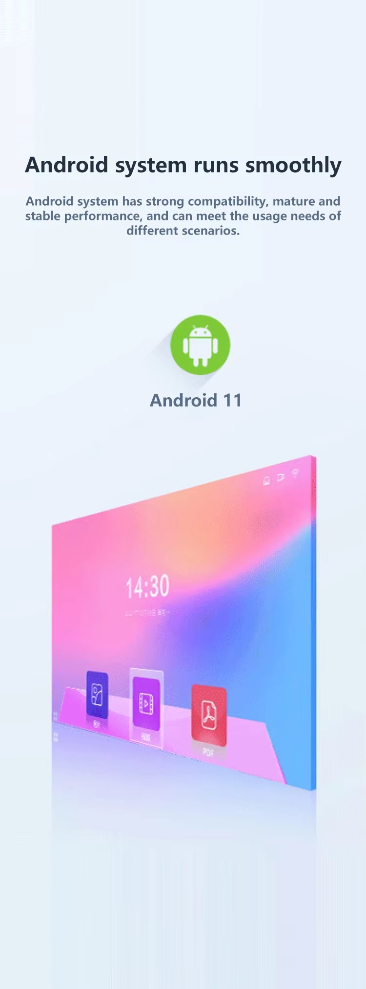 A Yes. OEM and ODM services are available, including logo branding, boot animation customization, system UI adjustments, and functional modifications. This allows brands and integrators to create differentiated commercial solutions.