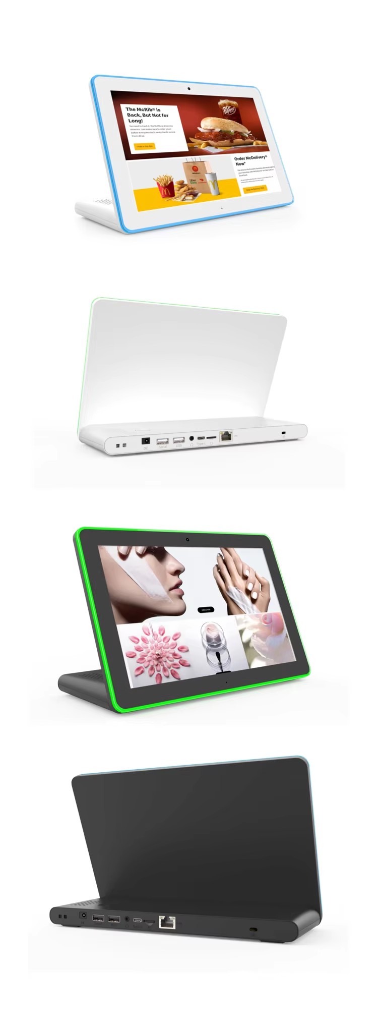 A This product is a commercial-grade Android desktop tablet designed for fixed business installations. It is engineered for stability, long operating hours, and professional deployment in environments such as retail counters, reception desks, service kiosks, and enterprise front offices.