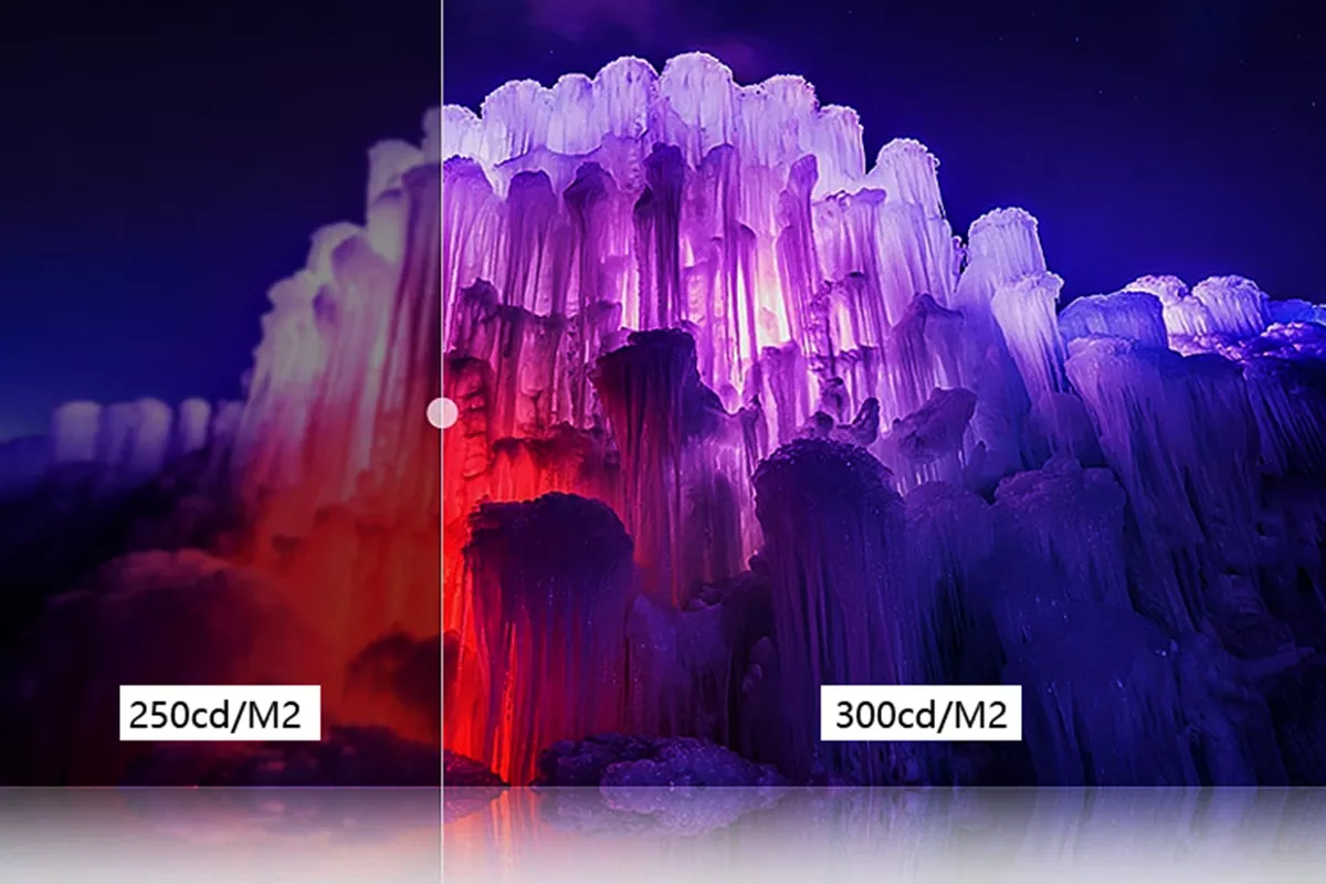With a display brightness of 300 cd/m2, the picture performance is more vivid and you can enjoy realistic and delicate visual images.