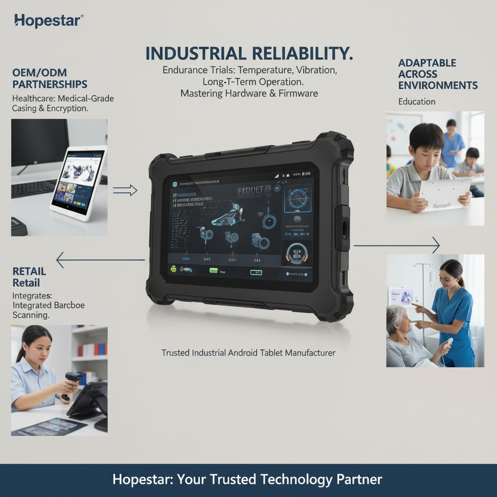 This commitment laid the foundation for Hopestar’s later innovations. By mastering both hardware and firmware, the company created products that could adapt across environments—education classrooms, factory floors, and point-of-sale counters. This was the birth of its identity as a trusted industrial Android tablet manufacturer.