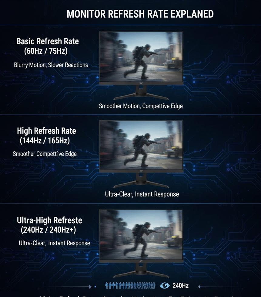 Traditional LCD monitors typically operated at 60Hz, but many modern gaming monitors now support 144Hz or higher, offering a significantly improved gaming experience with more responsive and lifelike motion.