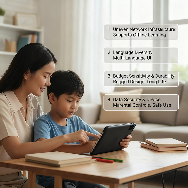 Despite the rapid progress, several challenges continue to shape the adoption of education tablets in Southeast Asia. These challenges also highlight the need for hardware and software designed with local conditions in mind.