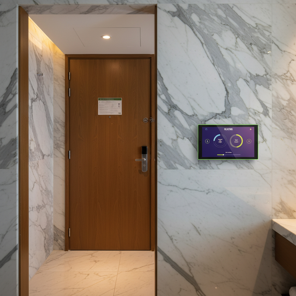 Upon entering their rooms, guests encountered a clean, intuitive Guest Room Smart Control Display. With minimal interaction, they could adjust lighting ambience, set preferred temperatures, or launch entertainment systems. Personalized welcome screens and multi-language menus enhanced the sense of exclusivity and care. On the operational side, concierge and housekeeping teams received real-time notifications through integrated systems, allowing faster and more accurate responses. In premium suites, synchronized multi-room controls enabled families or corporate guests to manage multiple spaces effortlessly, highlighting the advantages of a fully integrated Hotel Room Automation Display.