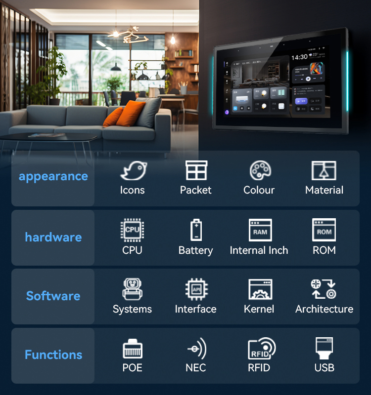 A4. The tablet supports PoE, RJ45 Ethernet, Wi-Fi, and peripheral interfaces, allowing seamless integration into smart office networks, digital signage platforms, and building management systems. PoE simplifies installation by delivering power and data through a single cable.