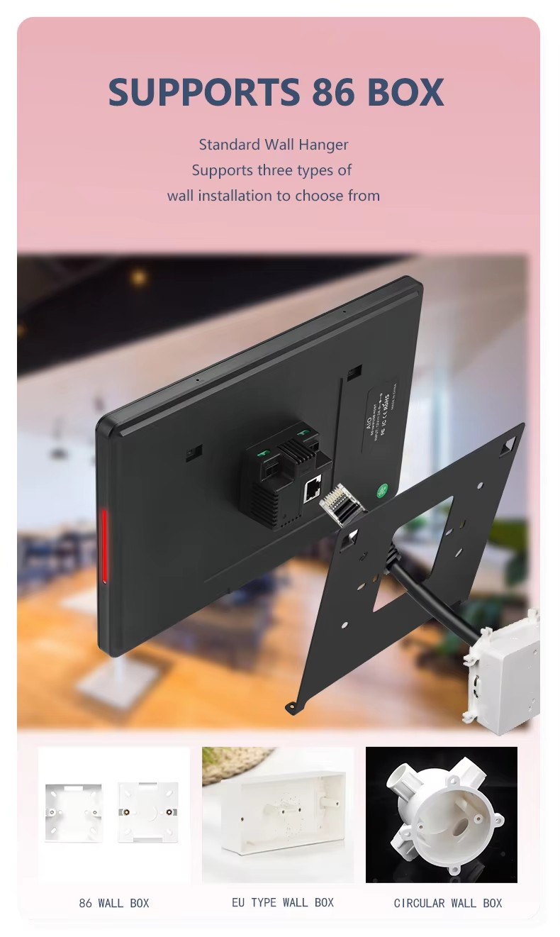 Designed for fixed installation smart control scenario Unlike consumer tablets that are adapted after the fact, this smart home tablet is purpose built for fixed installation. The size range from 8 inch to 10.1 inch provides flexibility for different wall layouts while maintaining a professional appearance suitable for hospitality and commercial environments. The slim profile and flush mounting design allow it to blend naturally into walls, panels, or custom enclosures without looking out of place.
