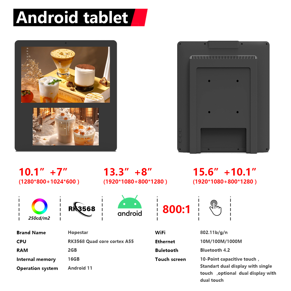 From a branding and customization perspective, this dual display Android tablet supports OEM and ODM services. Enterprises and channel partners can customize appearance, logo placement, software configuration, and functional modules to align with specific project requirements or regional market needs. This flexibility makes the product suitable not only for direct buyers but also for distributors and solution providers building their own commercial offerings.