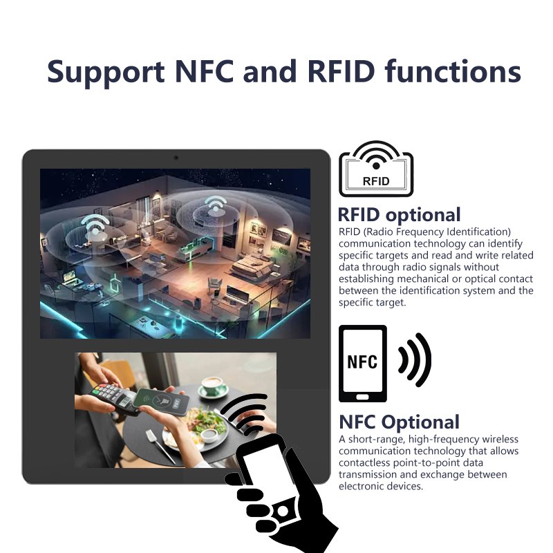 The built in NFC module supports contactless card reading for applications such as employee attendance, membership validation, access authorization, and identity verification. It is compatible with common NFC standards used in enterprise access and authentication systems.